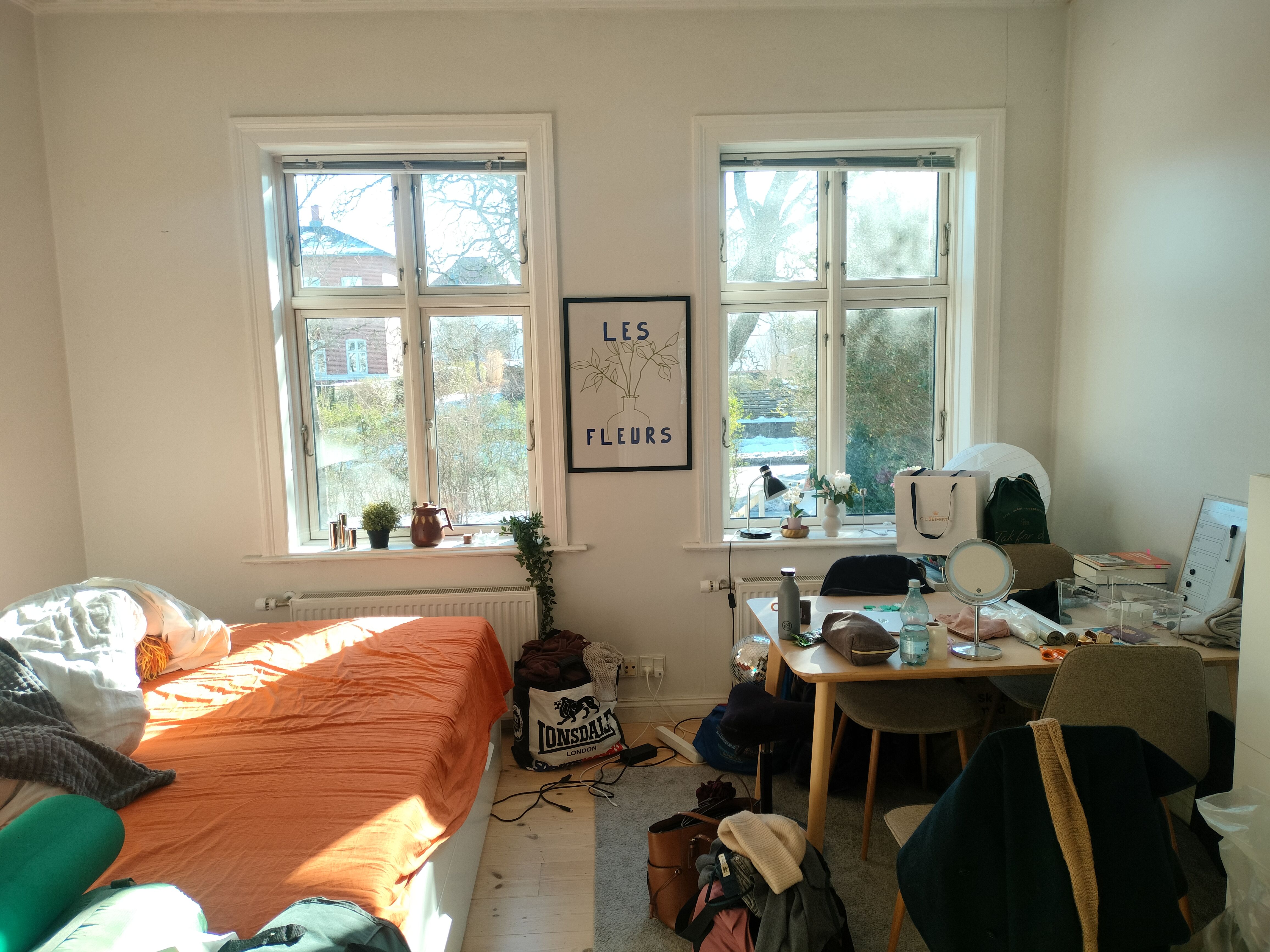 16 square meters, monthly rent 4.150 DKK all inclusive also internet, deposit 11.400 DKK. Move in price altogether 15.550 DKK. According to one of the other tenants this is a very good offer, considering the price and the location.
