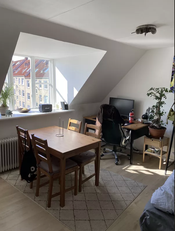 Prisvenligt værelse der kan overtages med kort frist på Skjoldhøjkollegiet. Du har din egen håndvask på værelset, men deler toilet med nogen af beboerne fra de øvrige værelser (ca. 3 beboere om hvert badeværelse). Her er fint udstyret fælleskøkken, som kan benyttes af alle 12 beboere på gangen, samt et fælles areal med spise- og hyggeplads. Alle faste udgifter som el, vand, varme og internet er inkluderet i huslejen, så det slipper du for at bekymre dig om. Du har ikke langt hjem med dine indkøb, da Lokal Brugsen har til huse på selve kollegiet. På Skjoldhøj er der masser af fællesarealer, man er velkommen til at benytte som beboer. Der findes bl.a. bar, musikrum, sauna, TV-stue og betalingsvaskeri. Skal du til centrum går bybussen 4A lige til døren - og den kører ofte. Og her på Skjoldhøjkollegiet må du gerne have dine husdyr med. Her på kollegiet må du bo, hvis du er studerende, men også hvis du er ung uden at være studerende (så er lejeperioden dog begrænset til sommeren 2026). (Det kræver at man er ung og kan dele fællesområder med unge studerende der har krav på ro til deres uddannelse). Vores udlejningsafdelingen sidder klar til at hjælpe dig, hvis du har nogen spørgsmål :) Arealet er vejledende og inkluderer fællesarealer.