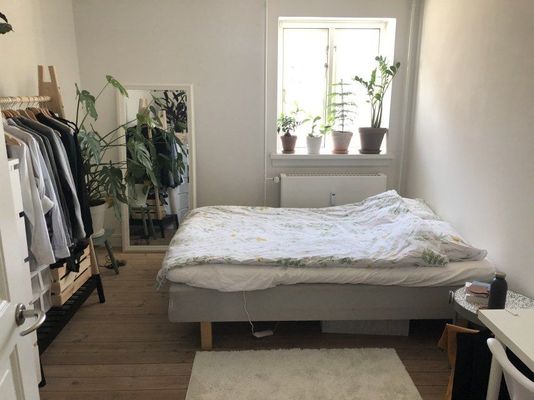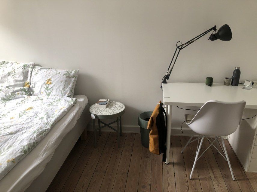 The room will be furnished when you move in with a 140x200 cm bed, a desk, a closet, a mirror, and more. Of cause you are also welcome to bring your own stuff. Kitchen is also equipped.
