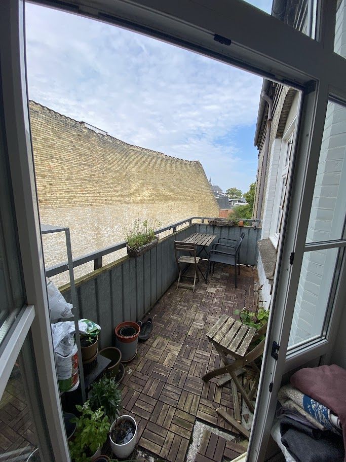 Det er på fjerde sal så der er en der er en fantastisk udsigt og en fælles tagterrasse og det er lige midt i centrum.