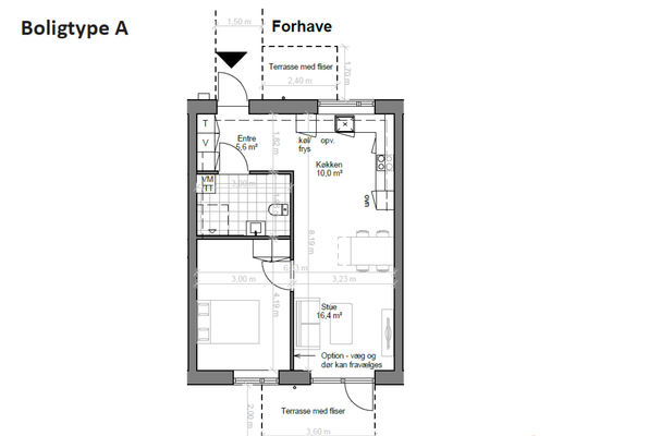 2 rm. townhouse of 59 m²