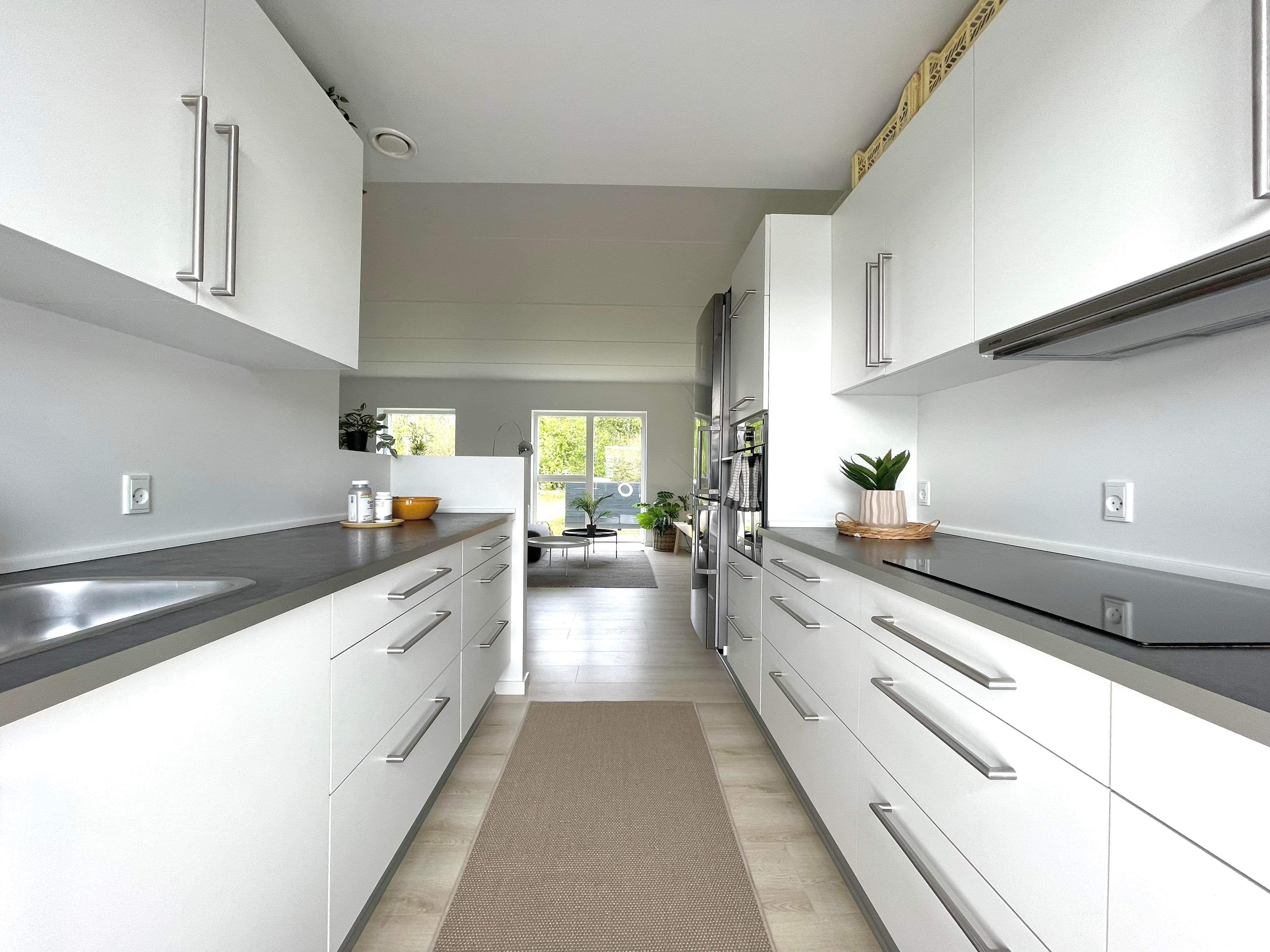 Meget flot og velindrettet rækkehus i 1 plan 3-værelses rækkehus med egen terrasse Køkken og stue Det åbne opholdsrum kombinerer stue og køkken i ét lyst og indbydende alrum. Køkkenet er placeret langs væggen i en vinkel, og den åbne indretning skaber en naturlig zone til både madlavning og afslapning. Køkkenet er udstyret med lyse elementer og moderne hårde hvidevarer, og stuen har direkte udgang til terrassen, som forlænger opholdsrummet i de lune måneder. Værelser Boligen har et soveværelse og ét værelse. Soveværelset rummer tre faste skabe og god plads til seng og opbevaring. Det andet værelse ligger i den modsatte ende af boligen og egner sig godt som børneværelse, kontor eller hobbyrum. Badeværelse Badeværelset er funktionelt indrettet med bruseniche, toilet og håndvask og udført i en lys og enkel stil, der passer til resten af boligen. Entré I entréen er der skabsplads til overtøj og sko, og her finder du også en vaskesøjle med både vaskemaskine og tørretumbler installeret. Uderum Boligen har en terrasse med plads til både havemøbler og plantekasser, samt et grønt område lige udenfor. Foran huset finder du et privat skur og flisebelægning, som kan bruges til cykelparkering eller pyntes med krukker. Der er parkering tæt ved bolig på fælles parkeringsplads. Der bliver opsat Norlys el-ladestandere på fælles parkeringspladserne. 🐶 Det er tilladt at holde op til 2 stk husdyr mod godkendelse fra udlejer. Visse hunderacer siger vi nej tak til, grundet race og størrelse. Obs. alle billeder, plantegninger og visualiseringer er vejledende.