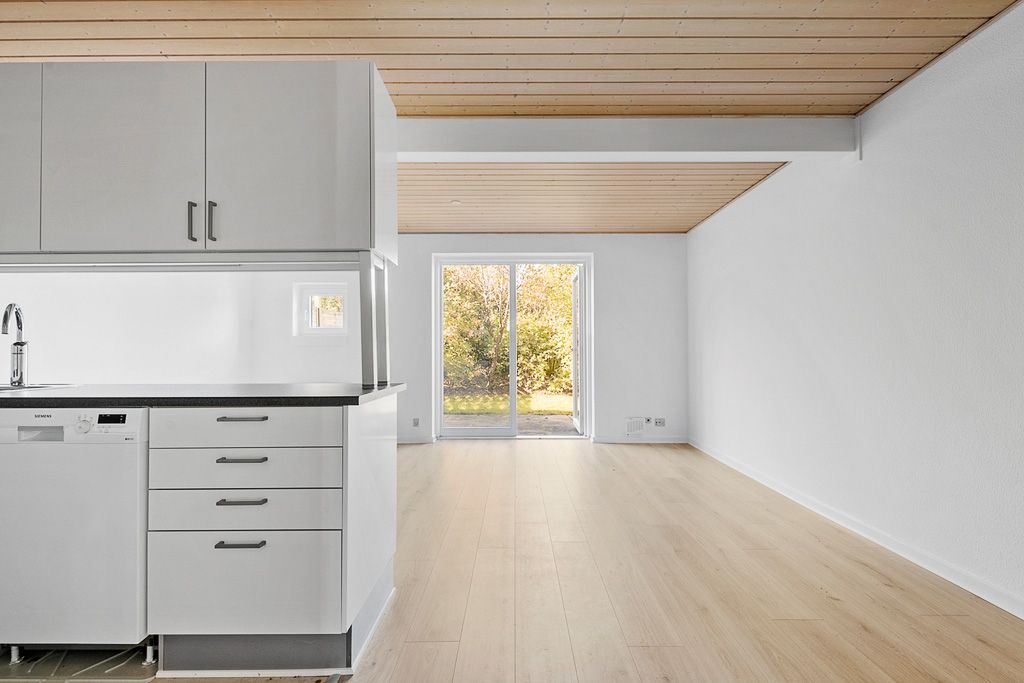 Kun 13 km nord for Aarhus finder I Søgaardshøjen og dette skønne enderækkehus i et plan. Perfekt til den lille familie eller jer, der gerne vil have ekstra plads.