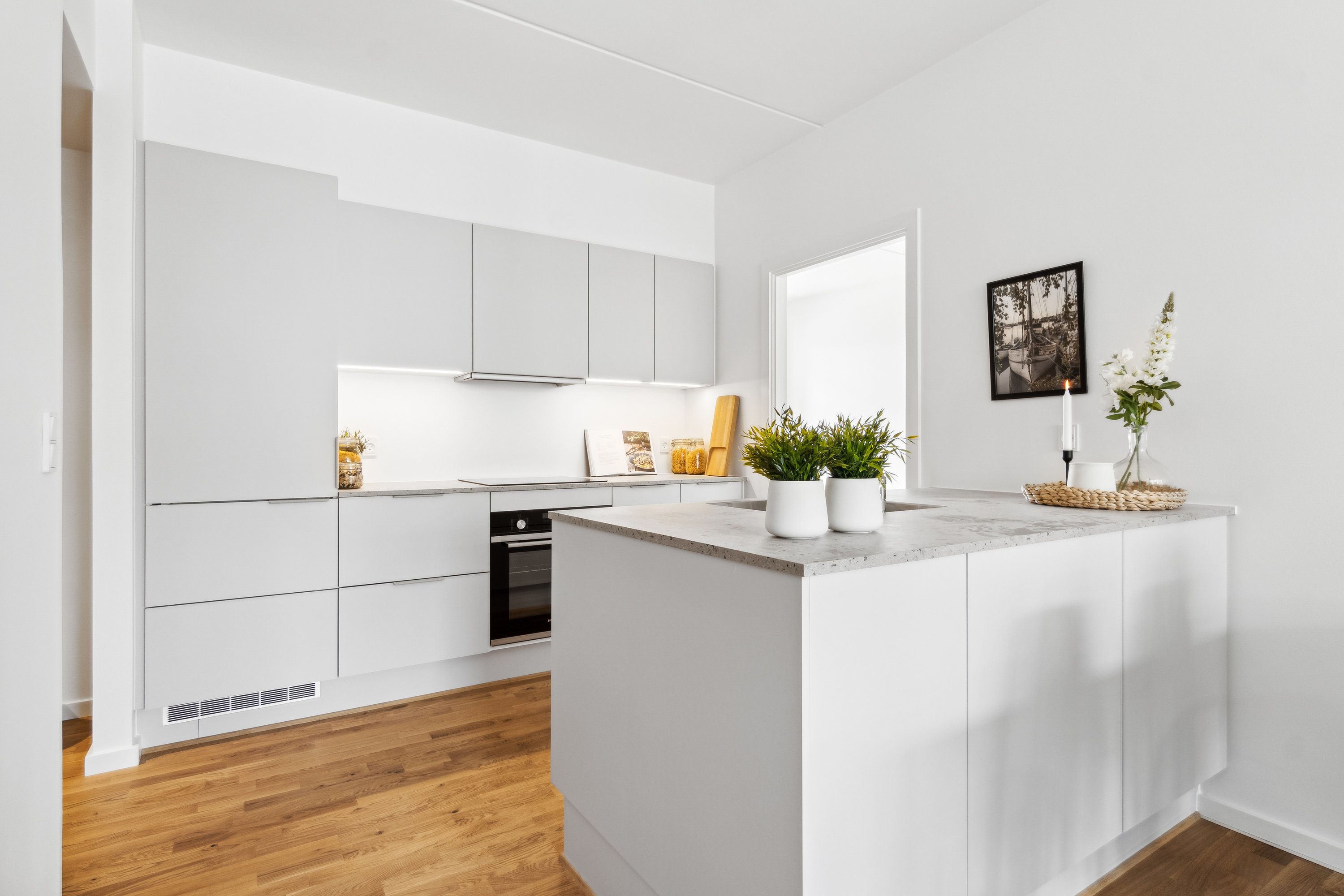 Du får alt i hårde hvidevarer, herunder også opvaskemaskine, vaskemaskine og tørretumbler. Yderligere er der gulvvarme i hele boligen.