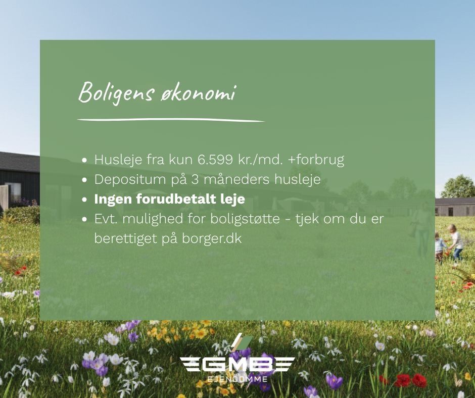 23 indbydende lavenergi-rækkehuse i ét plan – månedlig leje fra 6.599 kr. Lav indflytningspris og mulighed for hurtig indflytning