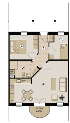 3 værelses rækkehus med udestue