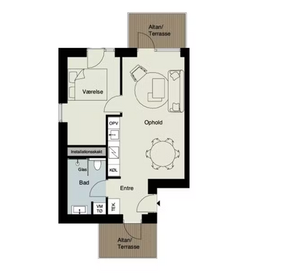 2 rm. townhouse of 76 m²