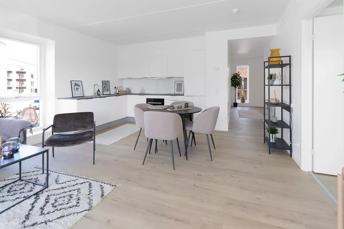 Området omkring Bølling Bakker i Horsens er kendt for sin storslåede natur med udsigt til Dallerup og Purhøj. Et ideelt sted for familier. Rækkehuset har en fremragende planløsning og udlejes til en attraktiv pris. I stueplan finder du et stort køkken-alrum, der føles som en balsal med masser af bordplads og rigelig opbevaring i skabe og skuffer. De store vinduer i stuen skaber et fantastisk lysindfald. Lejligheden har to toiletter – et i stueplan og et badeværelse på første sal, så din familie ikke skal i nærkamp om badeværelset om morgenen. På første sal er der tre store værelser, alle med indbyggede skabe. Fra stuen har du direkte adgang til en sydvestvendt terrasse med plads til grill, terrasse- og loungemøbler. Bølling Bakker er et meget attraktivt område for børnefamilier med gode institutioner og skoler, og en Coop365 lige i baghaven. Det bliver ikke nemmere. Husdyr er desværre ikke tilladt. Der er et skur og gratis, u-nummereret parkering. Lejer betaler selv aconto vand, varme og el direkte til værkerne. Lejer skal selv installere vaske- tørremaskine samt opvaskemaskine. Kontakt os for en fremvisning.