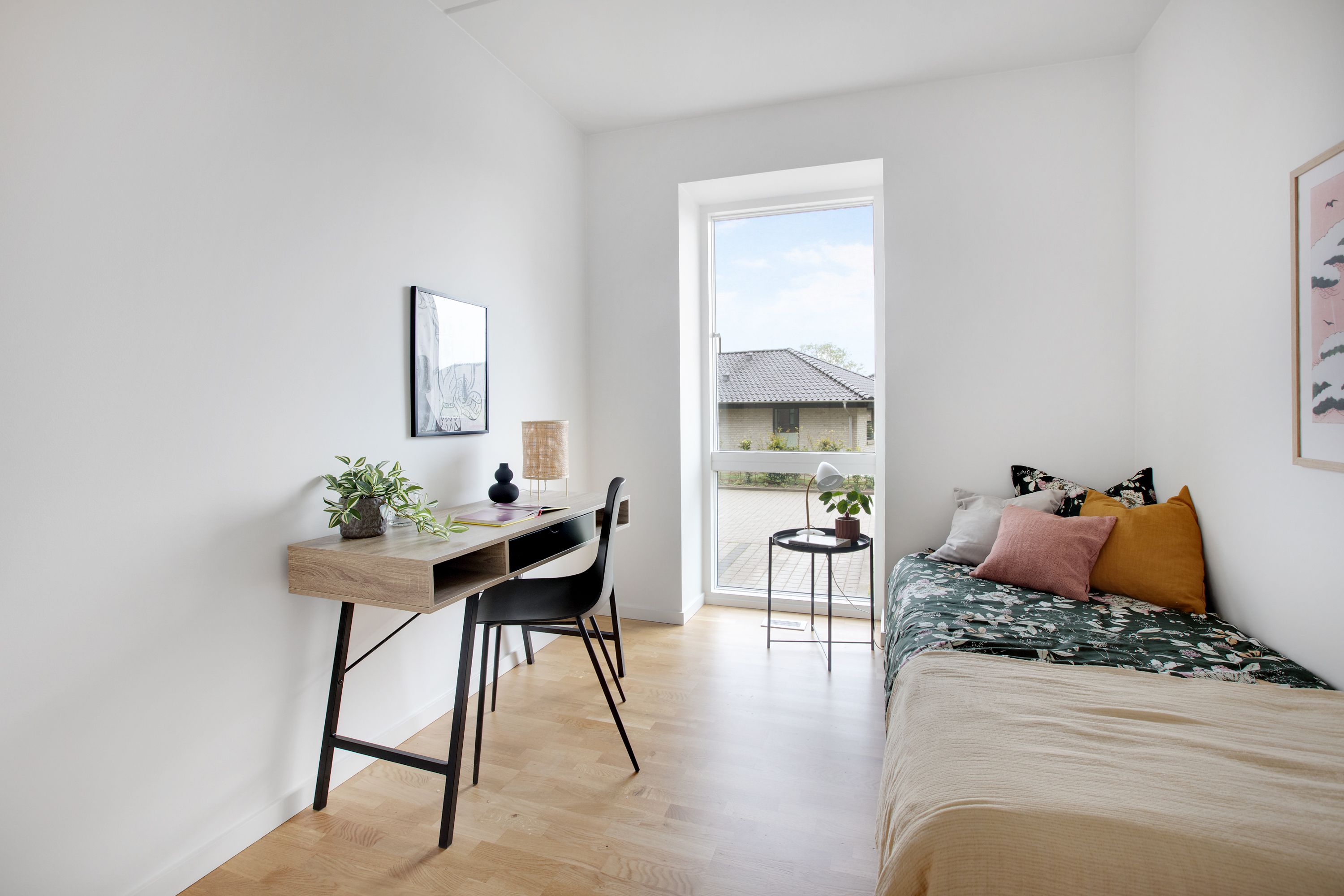 Om boligen: Gennemført rækkehus uden spildplads. Rækkehuset folder sig ud i en entré, der flyder direkte ind i et samlet alrum, der forener køkken og stue: Et rummeligt køkken, som ligger i åben forbindelse til stuen, hvorfra der er direkte udgang til husets helt store plus – i dette rækkehus får du en helt unik sydvendt terrasse kombineret med aflukket have. Fra alrummet har du yderligere adgang til stort depotrum. Overfor depotrummet findes et lækkert gæstetoilet med vaskesøjle. Bevæger man sig ovenpå, finder man boligens tre fine værelser, der alle har fornuftige størrelser. Dem kan I anvende til lige det, I har behov for, hvad enten det er et par børneværelser eller et hjemmekontor. I soveværelset er der ligeledes adgang til stort depotrum, som med fordel kan bruges til walk-in, hvis dette foretrækkes. På 1. sal finder I også hjemmets lækre badeværelse med separat bruseniche. Hele rækkehuset er desuden installeret med gulvvarme, som kan justeres i de enkelte rum. Bemærk venligst, at billederne kan være fra en anden bolig, hvorfor indretning, beliggenhed og udsigt kan variere. Materialevalg og kvalitet er den samme for alle boliger i ejendommen. Se plantegningen for indretningen af denne bolig. Om Banehaverne: Banehaverne er tegnet af det prisvindende arkitektfirma Sweco Architects, som har ønsket at skabe en ejendom med fokus på fællesskab og livskvalitet. Ejendommen rummer i alt 16 bygninger (inkl. rækkehuse), der centrerer sig omkring smukke gårdrum med legearealer og rolige opholdszoner. I alt kommer her 6 unikke gårdrum, som forbindes af en lang sti, som snor sig gennem hele komplekset og ender i det store aktivitetsområde Kilen. Kort om området: Området omkring Banehaverne byder på en harmonisk blanding af natur, kultur og byliv. Her er storslået natur ved både vand og skov, gode skoler og daginstitutioner samt et væld af fritidstilbud inden for både friluftsliv, idræt og kreative aktiviteter. Alt sammen er med til at skabe de bedste forudsætninger for en hverdag, der glider nemt og er rig på sjove og spændende muligheder. Banehaverne nyder godt af deres strategiske placering tæt på København. Med kun 10 min. gang til Glostrup Station og nem adgang til motorvejsnetværket er København tæt på. Det åbner dørene til en bred vifte af jobmuligheder og uddannelsesinstitutioner. Du kan nyde godt af den korte afstand til København, mens du stadig kan trække dig tilbage til den rolige atmosfære i Glostrup/Brøndby om aftenen.