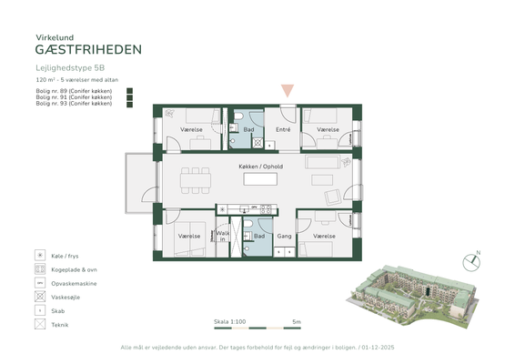 Til alle husene medfører et redskabsskur og alt i hårde hvidevarer. Der findes gratis parkering i området. Lammekær består af i alt 56 rækkehuse i 2 etager fordelt på 5 værelser.