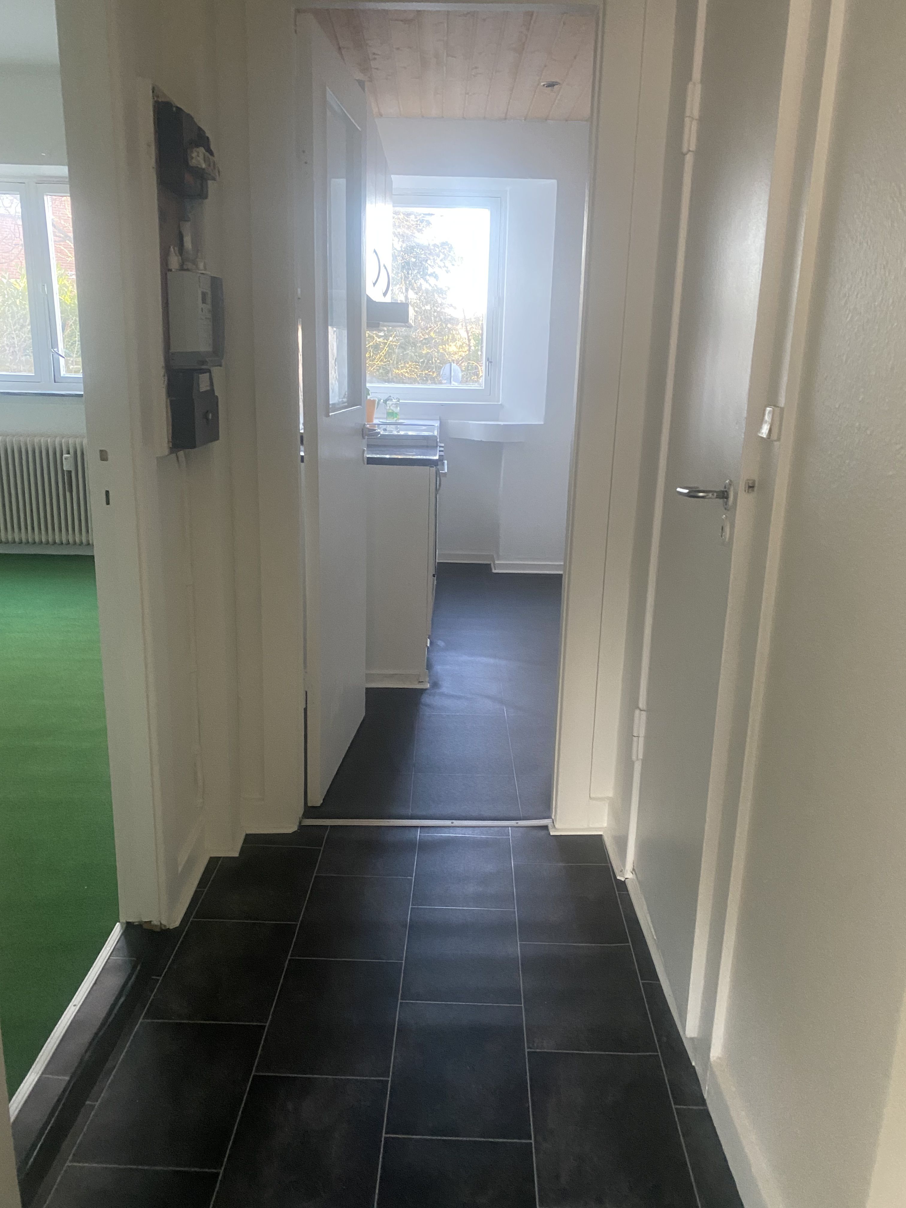 Billederne er kun retningsgivende for så vidt, farver og materialer angår. I det er taget i en anden lejlighed i bebyggelsen.