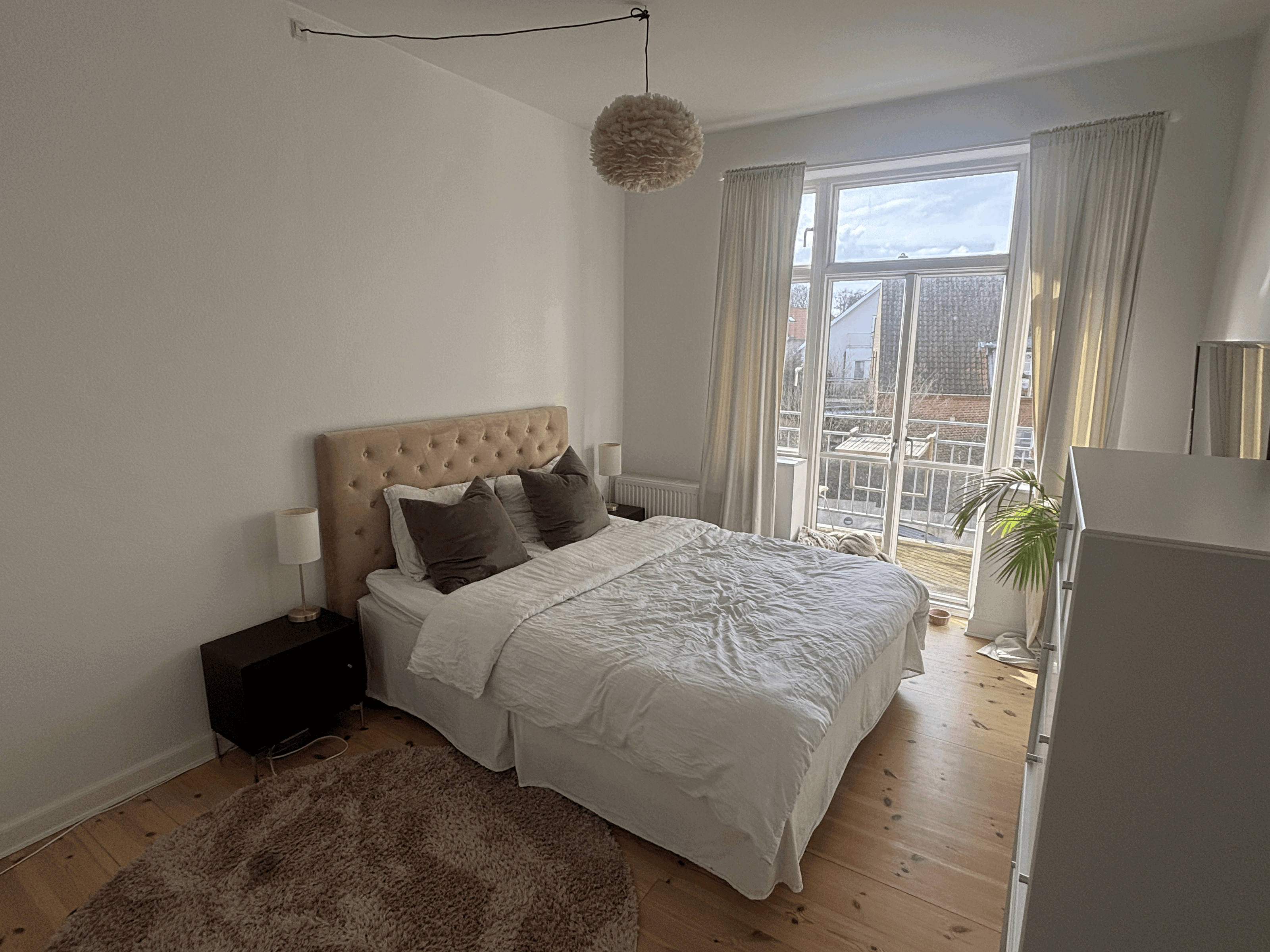 Fra entreen, med rigelig plads til en hel families tasker og jakker, træder du ind i det store køkkenalrum med et helt fantastisk lysindfald fra begge sider.