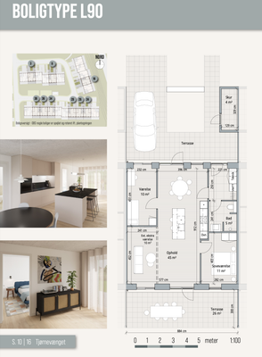 Boligtype L80 - 80m2 - 3 værelses.! Indflytning ca. 1. august 2027. VELINDRETTEDE BOLIGER I HØJ KVALITET De arkitektregnede boligerne er designet med funktionelle planløsninger, hvor hverdagen kan fungere naturligt og ubesvæ- ret. Gennemlyste opholdsrum og en stærk sammenhæng mellem inde og ude skaber lyse, åbne rum med høj brugsværdi. Troldtekt lofter i alle rum sikrer god akustik Slidstærke egegulve i opholdsrum Store klinker i entré og badeværelse Kvalitetsvinduer i træ/alu INDFLYTNINGSKLAR KOMFORT Der venter dig moderne og energirigtige løsninger, der sikrer høj komfort og et sundt indeklima året rundt. Alt er gennemtænkt, så boligen er funktionel og klar til indflytning fra første dag. Gulvvarme i alle rum Skabe på alle værelser Inventar fra JKE Integrerede hvidevarer Badeværelse med væghængt toilet, Unidrain og stilrent badmiljø Vaskemaskine og tørretumbler Spots i entré, køkken og bad PRIVATE UDERUM OG FÆLLES OMGIVELSER Boligerne er indrettet med private uderum og fælles opholds- arealer, der skaber luft og grønne kig mellem boligerne. Interne stisystemer og praktiske løsninger tæt på boligen gør hverdagen nem og overskuelig, med korte forbindelser mellem bolig, parkering og fællesarealer. Parkeringsplads direkte ved boligen Foreberedt til ladestik til elbil ved alle boliger Fliseterrasse med niveaufri adgang Udvendigt depotrum / redskabsrum til opbevaring