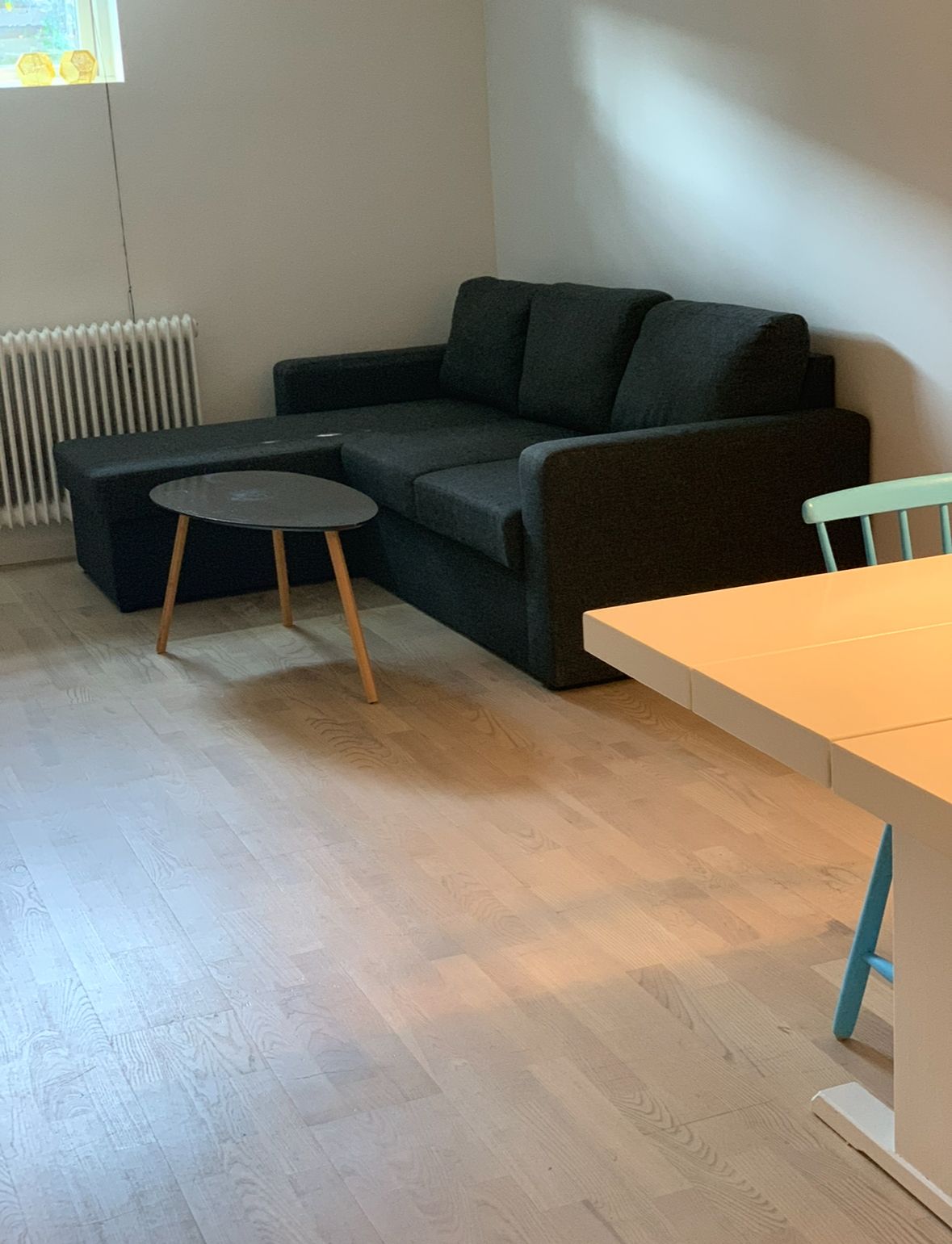 Det første man møder er det meget store køkken/stue alrum der er hjertet af lejligheden, herunder finder man også et lækkert badeværelse med vaskesøjle. På 1. salen får du 3 gode værelser. Derudover får du alt i Siemens hårde hvidevarer og et lækkert Svane køkken.