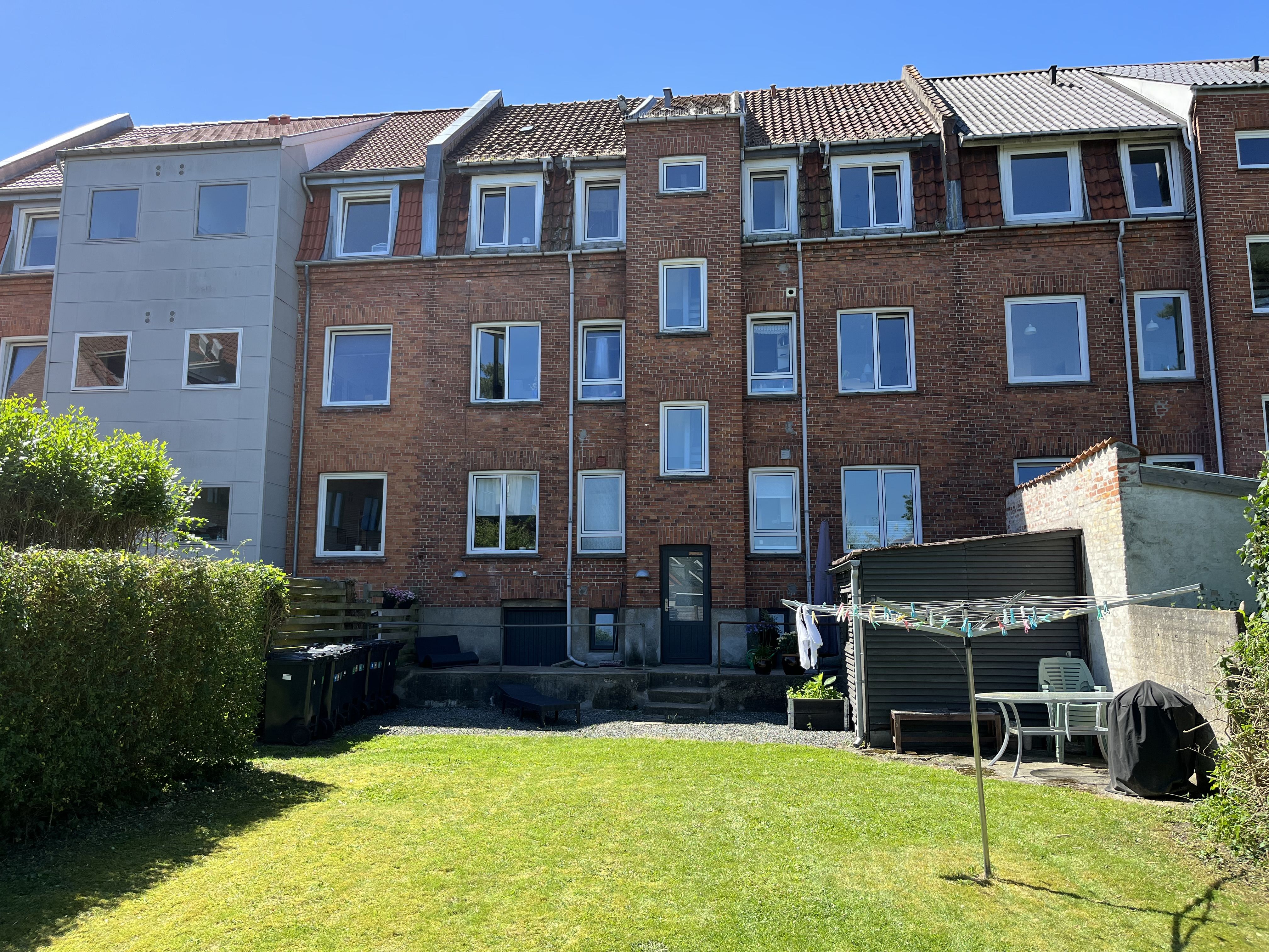 Velkommen til et indbydende og hverdagsvenligt rækkehus på 101 m2 med en funktionel planløsning, tre gode værelser og et stort opholdsrum. Her får du lyse materialer, praktiske detaljer og en rolig ramme om hverdagen – oplagt til par, familie eller som delevenlig bolig med separate værelser og et rummeligt fællesområde. Boligen byder velkommen i en entré med plads til overtøj og opbevaring. Herfra træder du ind i et stort og lyst opholdsrum, hvor stue og køkken ligger i naturlig forlængelse af hinanden. De gennemgående, lyse trægulve og de store vinduespartier giver et behageligt lysindfald, og rummet er nemt at indrette med både spiseplads og sofagruppe. Køkkenet er holdt i lyse elementer med flisebagvæg og byder på god skabsplads, integreret ovn og kogeplade samt et rummeligt køle-/fryseskab – alt sammen i et enkelt, tidløst udtryk, der gør det let at indrette. Fra stuen er der udgang til en altan, hvor du kan nyde dagens lys og få en grøn plantekrog eller en lille caféplads. Altanen giver boligen et ekstra uderum i hverdagen. Rækkehuset rummer tre separate værelser, der alle fremstår lyse og indretningsvenlige. Det største værelse har indbyggede skabe med skydelåger, mens de øvrige værelser er oplagte som børneværelse, hjemmekontor eller ekstra soveværelse – også ideelt, hvis I ønsker at dele boligen. Badeværelset er rummeligt med lyse fliser, bruseniche i plan, vindue for naturlig udluftning samt stor vask med underskabe og spejl med belysning. Der er desuden forberedt til vaskemaskine, så de praktiske opgaver klares hjemme. Opbevaringsbehovet er godt dækket med skabe i flere rum og et tilhørende depotrum, som giver ekstra plads til sæsonopbevaring og hverdagens ting. Husdyr er tilladt efter aftale, og der er mulighed for parkering ved ejendommen. Beliggenheden gør hverdagen nem. Du har flere busforbindelser helt tæt på, så pendling er ligetil. Indkøb klares i nærområdet med både supermarked, dagligvarebutik og bager, og der er kort vej til skole og daginstitutioner. Fritiden kan bruges i det lokale fitnesscenter eller på de nærliggende idrætsfaciliteter, og du har samtidig gode grønne åndehuller i området. Alt i alt et lyst og funktionelt rækkehus med altan, delevenlig planløsning og praktiske faciliteter, der gør hverdagen lettere – klar til at danne rammen om dit næste hjem. Kontakt os for en fremvisning.