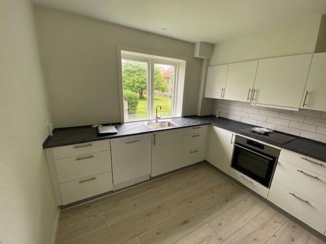 Beliggende i attraktivt område udlejes fint 2 vær. rækkehus på 60 m². Lejligheden har godt flisebadeværelse med brus. Godt køkken med enkelte hvidevarer. Stor lys stue med udgang til mindre terrasse/have samt godt soveværelse med faste skabe. Der er flotte nylakerede gulve. Husdyr tilladt med forbehold. Leje pr. mdr. kr. 5.530,62+ forbrug som afregnes direkte til forsyningsselskaberne. Forudbetalt leje kr. 11.061,24. Depositum kr. 16.591,86