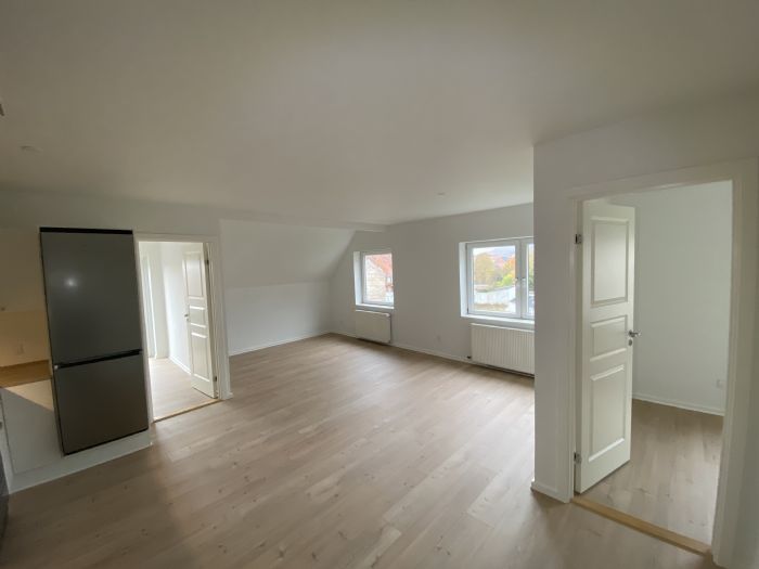 Nyt rækkehus med god et-plansløsning med gulvvarme tæt på indkøb, idrætsanlæg, skole og stisystem i Ødsted, tæt på arbejdspladser i Vejle, Kolding, Billund og Give. Huset har panoramaruder, egen have med terrasse, redskabsskur og carport ved huset. Huset er opført i 2017 med energimærke A2010 og heraf følgende lave forbrugsomkostninger. Det indeholder rummelig entre og bryggers med flisegulv, et dejligt køkken med diverse hårde hvidevarer og stue ud i et. Stuen har stort vestvendt vinduesparti med godt lysindfald og udsigt til grønt område. Boligen indeholder soveværelse med adgang til loft og 2 børneværelser. Det gode indeklima sikres af genvex-system og alt fremtræder lyst, dejligt og løbende vedligeholdt - skal opleves! Forbrug og vandafledning betales direkte til forsyningsselskaberne og Vejle Spildevand. Der er nem tilslutning af ladestander til el-bil efter behov. Husdyr efter nærmere aftale. Ødsted er et aktivt lokalsamfund med skole 0-9 kl., børnehave og idrætshal med motionscenter, Indoor Cycling og halfaciliteter. Med Brugsen, pakkeshop og tankstation i byen, har du mange ting i nærområdet. Ødsted ligger centralt placeret i Trekantområdet med 10 min. til Vejle og 15 min. til Kolding industriområde og tæt på den flotte natur i Vejle Ådal. Billederne er repræsentative for det aktuelle lejemål, dog kan små forskelle forekomme. Derfor – kontakt os og hør nærmere ...