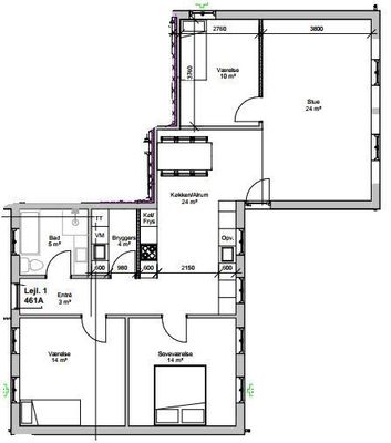3 vær. lejlighed på 82 m²