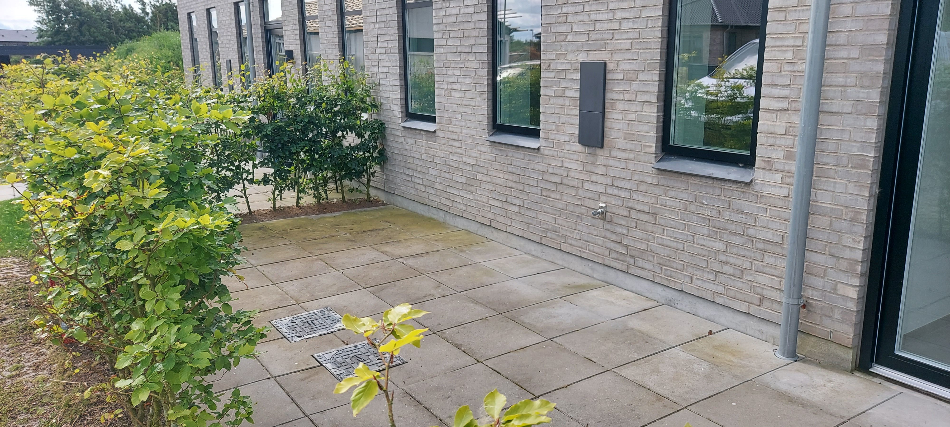 Hus med lukket have og carport 123 m2 Nyt køkken-2 baderum Gulvvarme