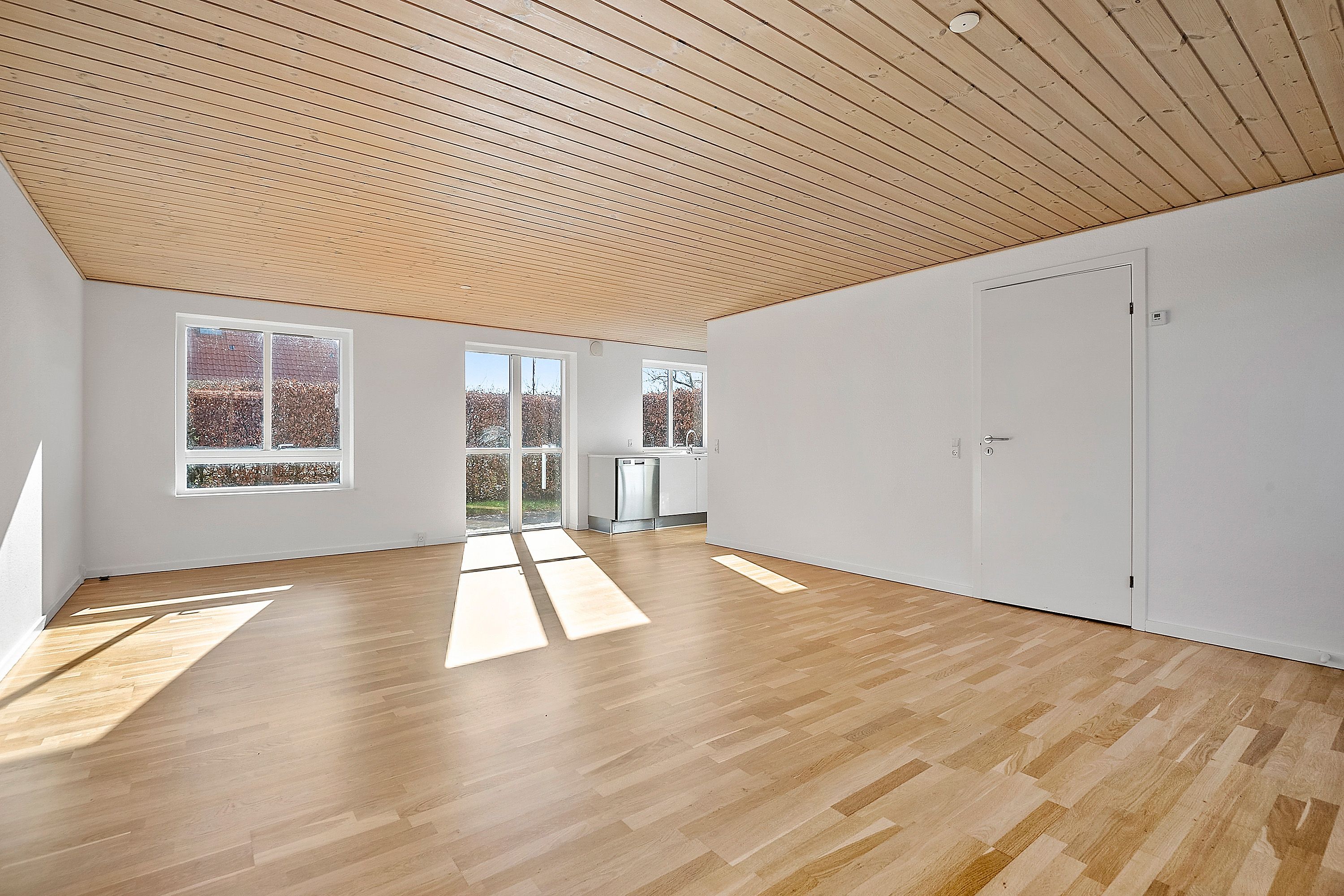 4️⃣ Store stuer med dejlige solrige terrasser og have til, med hæk rundt om