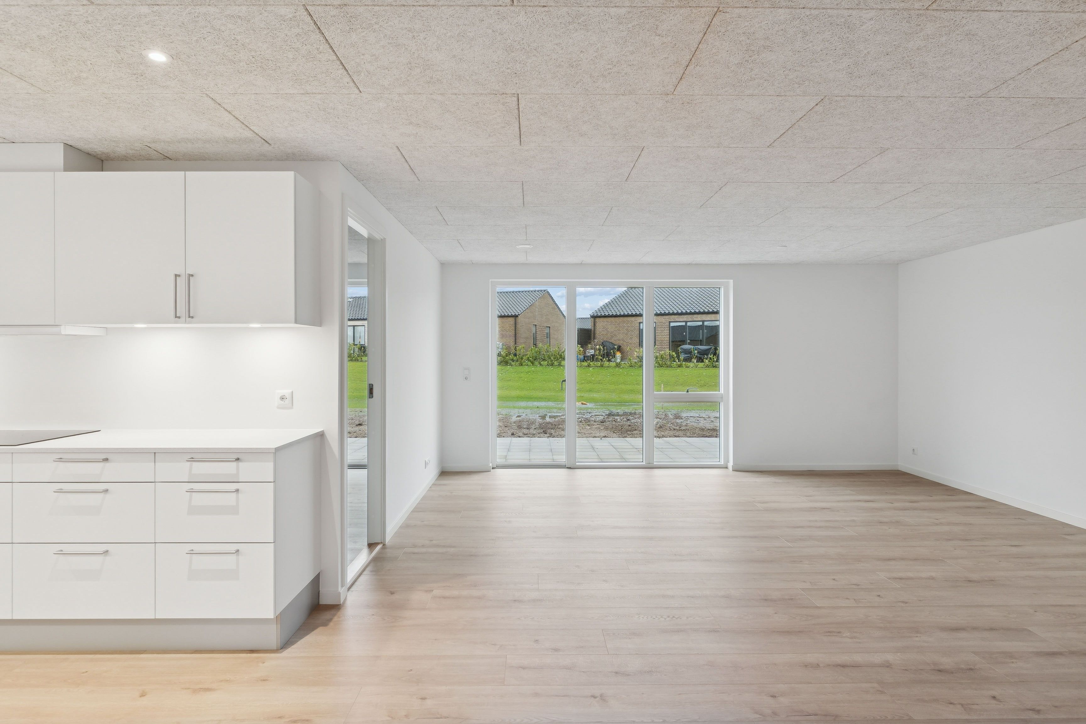 Boligen overtages med indbygningsovn, induktions kogeplade og emhætte. Lejer skal selv medbringe køleskab, vaskemaskine, opvaskemaskine og kondenstørretumbler. Installationer er forberedt.