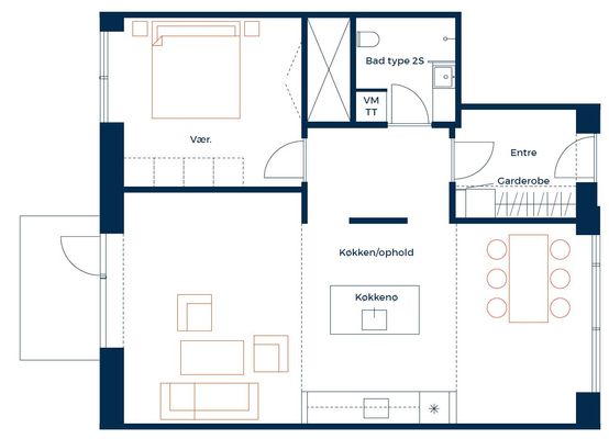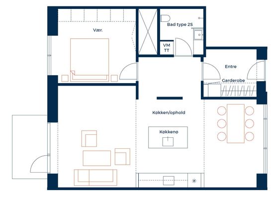 2 vær. lejlighed på 46 m²