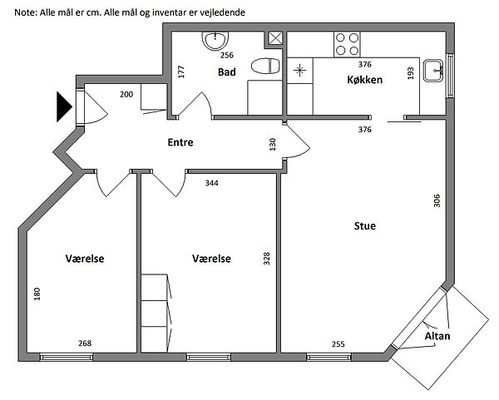 3 vær. lejlighed på 80 m²