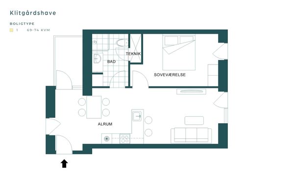 2 vær. lejlighed på 70 m²