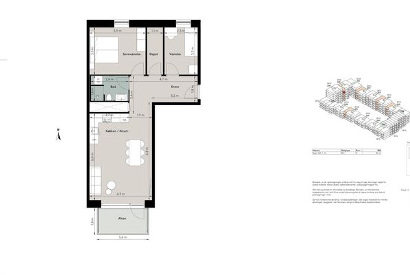2 vær. lejlighed på 59 m²