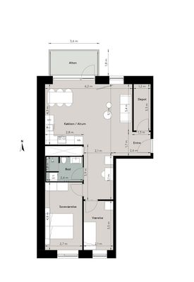 2 vær. lejlighed på 59 m²