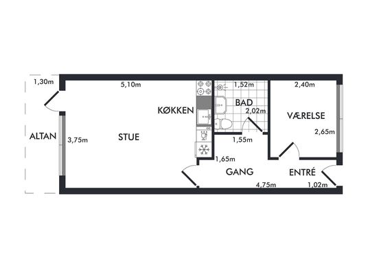2 vær. lejlighed på 52 m²