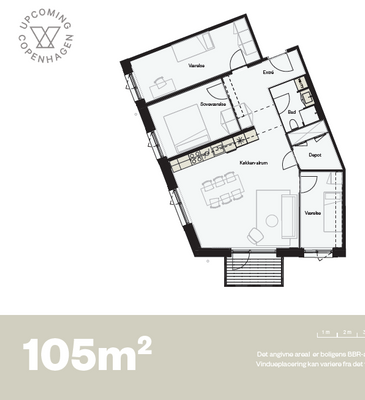 3 vær. lejlighed på 105 m²