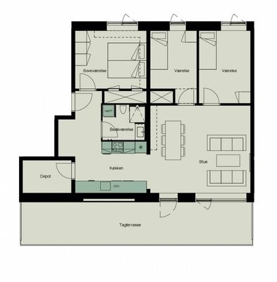 3 vær. lejlighed på 90 m²