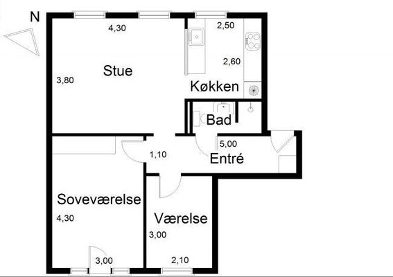 3 vær. lejlighed på 80 m²