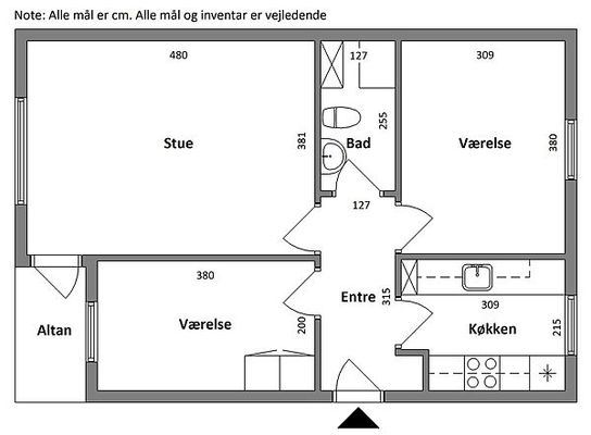 3 vær. lejlighed på 80 m²