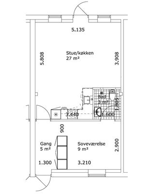1 vær. lejlighed på 39 m²