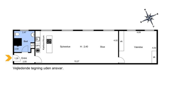 2 vær. lejlighed på 34 m²