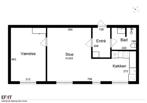 1 vær. lejlighed på 34 m²