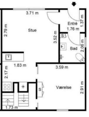 2 vær. lejlighed på 72 m²