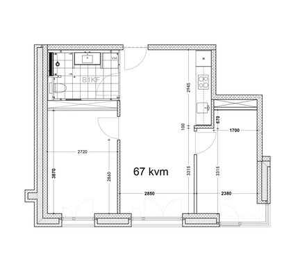 2 vær. lejlighed på 67 m²
