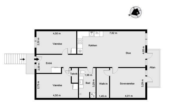 3 vær. lejlighed på 80 m²