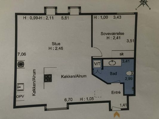 3 vær. lejlighed på 70 m²