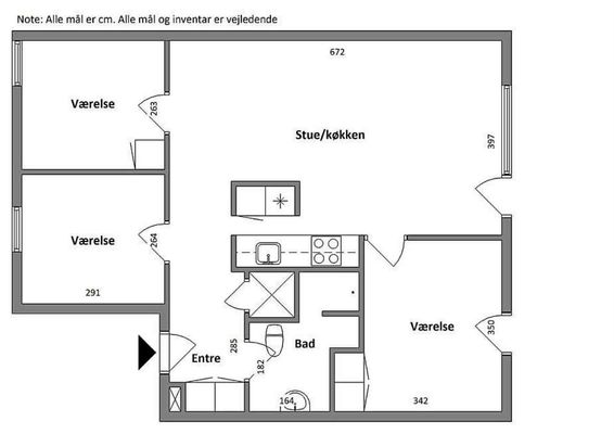 3 vær. lejlighed på 50 m²