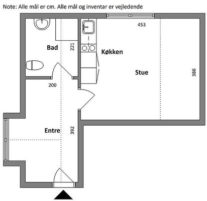 2 vær. lejlighed på 43 m²