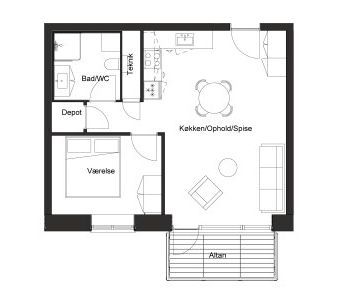 1 vær. lejlighed på 36 m²