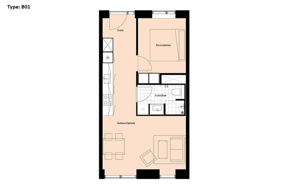 1 vær. lejlighed på 36 m²