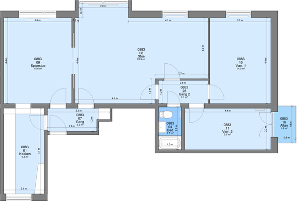 3 vær. lejlighed på 93 m²