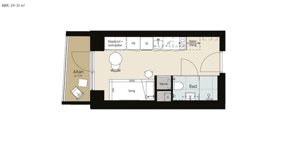 1 vær. lejlighed på 29 m²