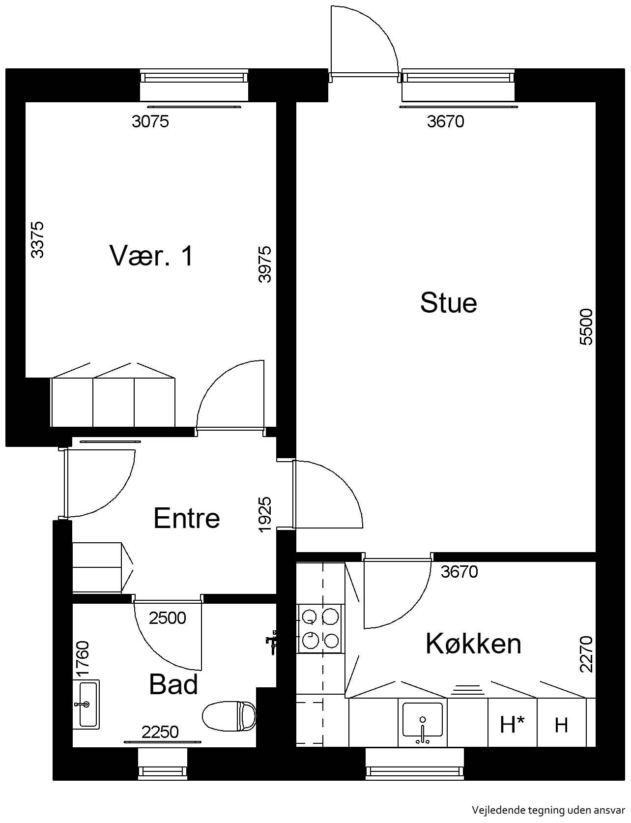 1 vær. lejlighed på 33 m²