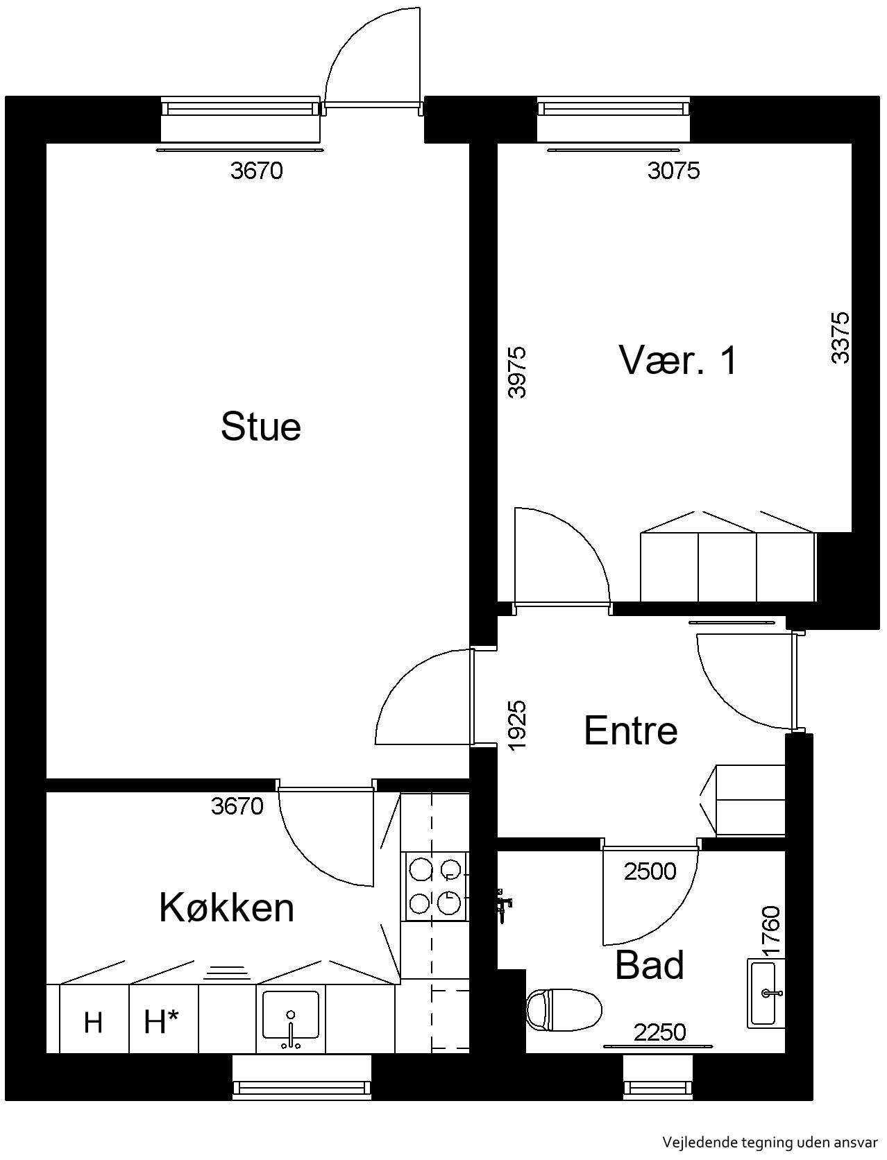 2 vær. lejlighed på 43 m²